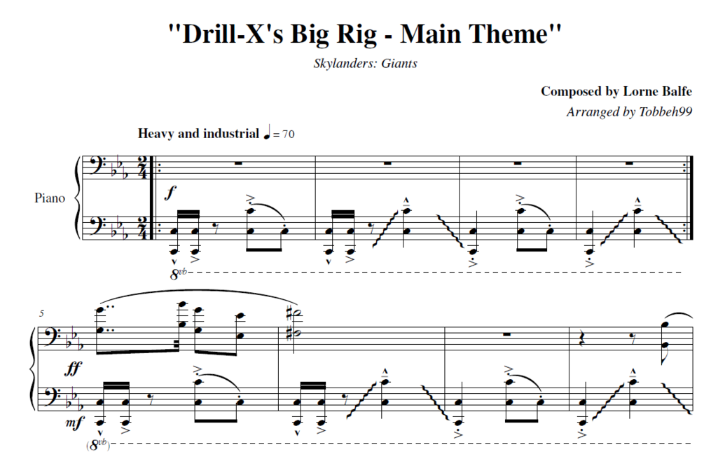 Skylanders: Giants - Drill X's Big Rig - Main Theme Sheet Music