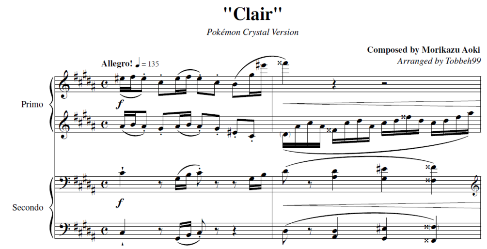Pokémon Gold/Silver/Crystal - Clair (4-hands Duet)